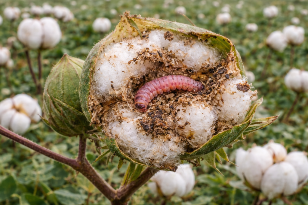 गुलाबी सुंडी कपास की सबसे विनाशकारी कीट है जो फूलों और टिंडों को नुकसान पहुंचाती है। यह कीट 30-60% तक उपज हानि का कारण बनती है।