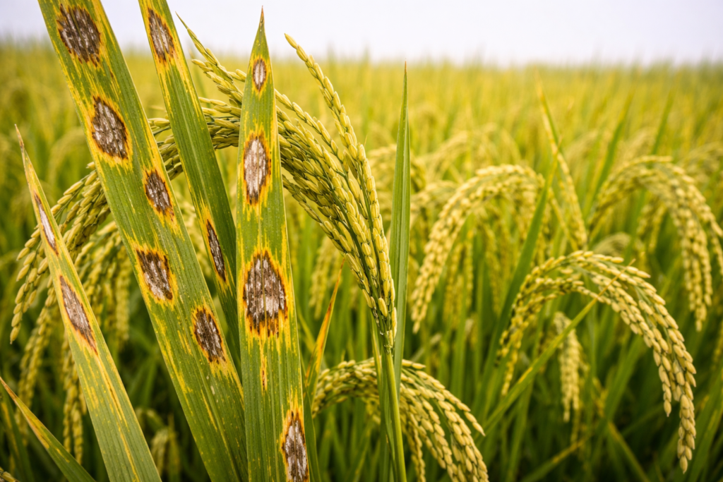 चावल का ब्लास्ट रोग पाइरिकुलेरिया ओराइज़ी नामक कवक के कारण होता है। यह रोग पत्तियों, तनों और बालियों को प्रभावित करता है और 70% तक उपज हानि का कारण बन सकता है। रोग के लक्षण रोग के कारण उपचार के तरीके रोकथाम के उपाय